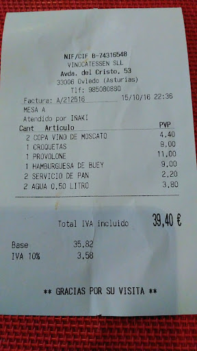 Read moreFuimos en pareja un sábado noche. El comedor es muy chiquitín (4 mesas), pero tuvimos suerte y había mesa libre. Tomamos antes dos copas de Moscato y a eso de las 22:30 pasamos a cenar. Pedimos todo para compartir: una tapa de croquetas de queso azul y mermelada de tomate, provolone con mermelada de pimientos y tomate seco y una hamburguesa de buey. Las croquetas supercremosas y nada cargantes y el toque de la mermelada lo hace espextacular. Me llevé una gran sopresa con la hamburguesa, venía poco hecha (a nosotros nos gusta así) pero quizá sería mejor preguntar por el punto de la carne, acompañada de patatas paja, aún así estaba espectacular!! De las mejores hamburguesas que he probado. Todo ello junto con el pan y dos botellas de agua por 40€. Repetiríamos sin...