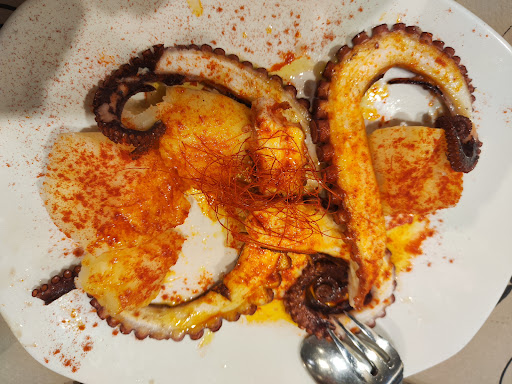 Read moreTenía ganas de probar este restaurante recomendado por su pulpo. En resumen, la comida estaba buena pero el ambiente estropeó la experiencia. Reservamos para cenar un sábado a las 20h y no había aún mesas cuando llegamos. Pedimos pulpo a la gallega y entrecot y los dos platos estaban buenos. La ración de pulpo me pareció poco abundante pero estaba sabroso. El problema era el volumen del televisor. Tenían lo que parecía ser un culebrón extranjero con el volumen demasiado alto. En tres ocasiones les pedí a tres camareros diferentes que si por favor podían reducir el volumen porque no podíamos tener una conversación (con el drama del culebrón de fondo). Los tres camareros ignoraron mi petición, con el último haciendo un gesto como de no importarle un pimiento que nos molestase. Si esa situación la hubiera tenido en el típico bar de barrio pues lo hubiera entendido, pero no lo esperaba para un restaurante con una ubicación en el centro de Oviedo y una reputación. No volvería solo por el ambiente y la pobre experiencia con...