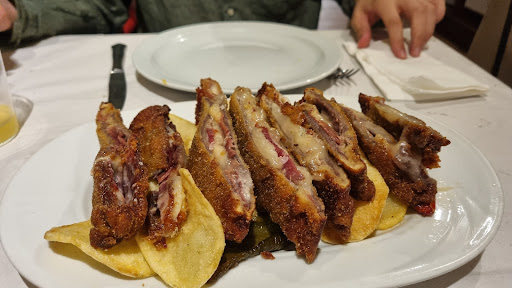 La comida en sí estaba buena, pero la cantidad era increibiemente escasa para el dinero que costó, fuimos de cena de empresa y tocamos a 27€ por cabeza y tocamos a 1 croqueta (un par de afortunados comieron 2), una porción de ensalada, una cucharada de revuelto de setas y una tira de carne con dos patatas (literal) del postre ya ni hablamos mitad de flan, bola de helado, cucharada de compota y media porción de tarta de queso para cada 6 personas... La segunda cena más de lo mismo, yo esperaba que en la otra hubiera sido algo excepcional, pero no. Yo creo que hubiera pedido dos cachopos en otro sitio y me habría salido más a cuenta
