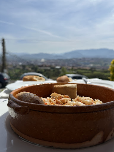 Si tenéis prisa, este no es vuestro sitio. Ya podéis elegir bien estratégicamente la mesa o ya podéis olvidaros de que os atiendan. Hemos ido con el lugar medio lleno, se notaba que no había demasiada gente pero a pesar de eso mira, no me quiero ni imaginar cuando esté lleno. El lugar es muy bonito, las cosas como son, pero la atención deja mucho que desear. No sé cómo se organizarán para atender mesas pero aseguró que bien no lo hacen. Hay un camarero con barba que se le ve haciendo todo el trabajo, obviamente el hombre va agobiado y es un poco más borde que los otros. Pero es que los otros, los que tienen una imagen de ellos en el interior de la sidrería, iban con toda la calma del mundo, el más delgado hacia el trabajo lo justo, pero el otro se paraba a hablar y no le veíamos que hiciese mucho. A una pareja que teníamos al lado les ha pasado lo mismo, e incluso cuando les estaban preguntando algo a los camareros les han dejado con la palabra en la boca. Pasamos a la comida. Las croquetas las pedimos de jamón y de cecina, venían 8, buena ración, peeeero se equivocaron dos veces y nos las trajeron de Cabrales, de las cuales 5 fueron de Cabrales y 3 de jamón,además aceitosas. Cómo íbamos con prisa ya no nos quejamos porque nos íbamos sin comer. También pedimos un plato de queso de cabra caramelizado con pimientos que el queso estaba bueno, pero los pimientos me recordaban a unos de bote pero no estoy seguro de ello y además la cantidad era bastante pequeña para el precio que tenían, sobre todo en comparación a cualquier sidrería con los mismos precios en cualquier lugar de Oviedo. Pasando a los baños eran viejos y con poca limpieza, con un poco de olor a moho. Teniendo en cuenta esto, os recomiendo encarecidamente si os merece la pena esperar, pero personalmente os recomiendo que si venís a ver los templos vengáis comidos u os traigáis bocadillos. Os merecerá más la pena, a no ser que solo queráis beber algo, en cualquier caso para admirar las vistas sin prisa es aceptable. Ojalá esta reseña también sirva para que mejoren algo en el local porque con las vistas que tienen y el lugar en el que se encuentran lo tienen muy mal...