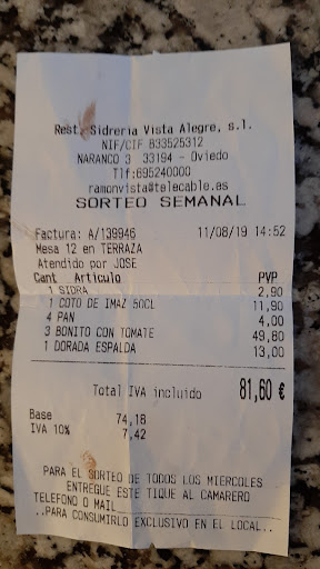 Read moreLa comida en general, no tenía mal sabor. Pedimos una tabla de quesos, un solomillo de buey(que luego nos enteramos que no había) y unos fritos de pixin. Primero los quesos, bien, 5 tipos de quesos y membrillo. Luego salió el solomillo, que resultó ser de cerdo porque no había buey. Ahí se me amargó la comida al encontrar un resto de nanas de aluminio en el plato, lo tiré y empecé a comer, hasta el último trozo que tenía un trozo de nanas encima, por lo que ese no lo comimos. Por último los fritos de pixin, pequeños, pero no estaban malos. A los postres nos atiende otra persona que nos ofrece natillas(sin nata las pedimos), tarta de queso y una "excelente" tarta selva negra. Pedimos uno de cada, éramos 3. Las natillas, luego eran una especie de tarta de la abuela deconstruida, dicho por quién las hizo después de vendernoslas como natillas, en un bote con bastante mala pinta. Tarta de queso no quedaba y la excelente tarta selva negra era la misma que te vende el Mercadona(que no está mal, pero ni el Mercadona le da tanto bombo de lo "excelente" que es) por lo que me sentí engañado. Había comido hace años y estaba bien. Incluso cenado después de dar un concierto allí y tenía buen recuerdo.