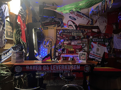 Auch optisch bis ins Detail dekoriert mit vielen Trikots, Schals und anderen Dingen. In jeder Ecke kann man was entdecken!