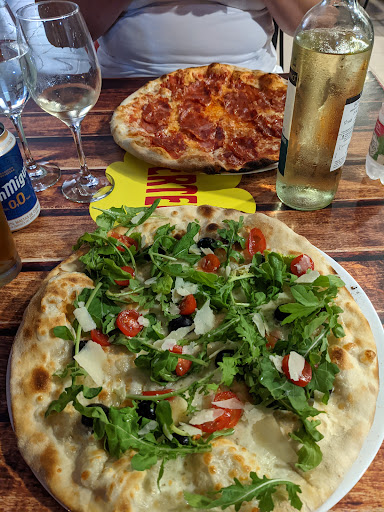 I would like recommend this pizza place very very much. For 2 pizzas, 3 drinks we have paid 22 euro only! I must admit pizza was perfectly made by the Italians and these guys know how to make pizzas! Waitress was also absolutely superb, nice and helpful. I have drop my fork on the floor, never even asked for another one and 5 seconds later clean fork was handed in! You must go from behind upstairs, it’s located bit behind but if you find this place - that is real gem between overpriced places in this popular beach resort. Why would you buy a pizza from anyone else but Italians? Really stop reading these reviews and make your way up there, what you waiting for? ;-) enjoy! Oh there is my wife on the picture, and I know she is...