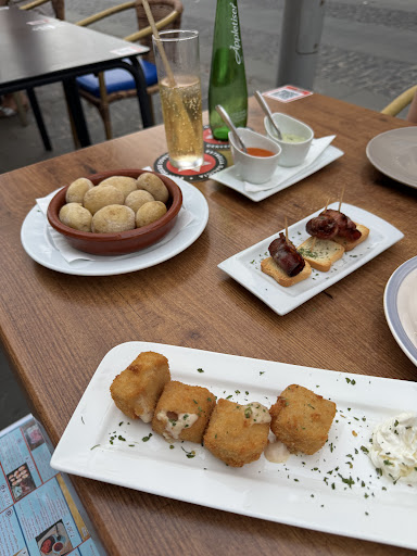 Read moreI guess this is a place you either love or hate . You will love this place if you never had tapas before and want a show master to tell you constantly how to behave and how to have fun and how great this place is , if you are not picky with food and satisfied with the just average quality of the tapas and if you prefer sitting in a restaurant where there’s are only other tourists and no locals and you also could avoid choosing the dishes by taking a tapas menue. If that is you, you’ll probably love this place (as many apparently do ). But if you like really good tapas and places where also locals go to, then better skip this one . There are better places - eg the one just 100 metres away toward the beach where people constantly queue up to get a seat until late at night . The probably only nice thing is the friendly waitress who spend time explaining the wines and also was willing to speak Spanish with you . And the wines were actually quite nice (we had one from Galicia and one from Palma). The other good thing is that we weren’t charged for the pork with fries that we didn’t touch but had not...