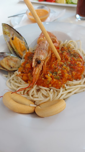 Staff abbastanza ospitale, anche se il tavolo da noi riservato lo han dato via davanti ai nostri occhi a un gruppo più numeroso pur scusandosi. Ho fatto l'errore di non ordinare il pescato del giorno, prendendo gli spaghetti alla marinara: pasta con un gamberone, 2 cozze, un composto di pesce al sugo, un grissino, due taralli e 2 pezzetti di formaggio di capra (!!!). Pasta stracotta e forse nemmeno di grano duro, probabilmente tutto congelato comprese le 2 cozze (servite nel piatto ancora con la barba!), composto non all'altezza. Per la cronaca, ho assaggiato da altro commensale anche il tonno bianco pescato del giorno "adobado" e non era malissimo, solo anche quello troppo cotto e asciutto. Mi han chiesto al conto cosa non andasse e ho detto in modo costruttivo che la pasta era scotta e non mi era piaciuta e che da Italiano mi aspetto altro e han commentato con "Italiaanoo" come a dire che ero il solito lamentone italiano. Da Italiano ogni pasto è fondamentale!