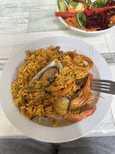 Read moreJedzenie bardzo słabe w smaku. Sałatka (8,5eur) + bułka to najlepsze co tam zjecie. Nuggetsy 12 eur, nie można wymienić frytek na ziemniaki. Palella okropna w smaku, nie da się bardziej zepsuć tego dania. Ryż rozmoczony, bez żadnego smaku. Krewetki nie obrane i nie oczyszczone z układu trawiennego. Za nugetsy, sałatkę i palellę zapłaciliśmy 31,5 eur. Kolejny minus, druga pani kucharka zobaczyła że pierwsza nałożyła za dużo nuggetsów i ściągnęła tego...