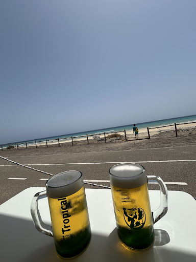 No es un Chiringuito de playa!! Esto no es un chiringuito de playa. El servicio y la amabilidad del personal es de primera. Pídeles que te preparen algo para el día siguiente y te darás cuenta de lo que te digo, no te limites al "cortado" después del todo incluído del hotel o a sandwiches, hamburguesas y pizzas. Nosotros hemos comido alguna que otra vez lo típico que tiene (atún a la plancha muy rico, calamares a la romana...), pero el pasado viernes santo, comentando la bondad del arroz de otro lugar, me comentan que son especialistas en arroz y fideuá aunque lo hacen por encargo. Pedimos fideuá para tres para el día siguiente y "BOOM", la fideuá es la bomba. Bien preparada con los fideos en su punto, "tropezones" por doquier (calamar, pescado, mejillones...) y una melosidad que no había probado hasta ahora. Indudablemente, un descubrimiento que no podremos obviar en nuestras próximas visitas a la isla (Jarra de cerveza, caña, refresco grande, pan, fideuá para tres -más de seis...