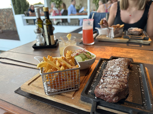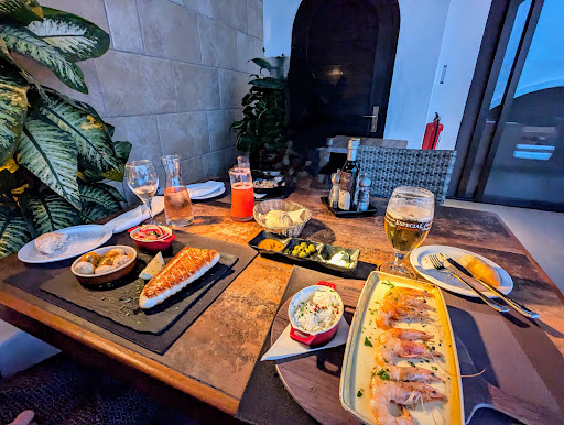 Read moreWir waren nicht zufrieden! Vorspeise Datteln im Speckmantel, geschmacklich gut mit einer sehr leckeren Soße. Wir wurden nicht gefragt ob wir für die Soße etwas Brot möchten. Danach mussten wir selber fragen. Der Speck hatte so dicken Knorpel, dass man auf seine Zähne achten musste. Ich hatte Bruschetta. Brot sehr hart , sehr wenig Tomaten, dafür extrem viel rote Zwiebeln. Wenn man schon Zwiebeln nimmt, dann bitte eine milde Sorte. Es schmeckte nur nach Zwiebeln. Auch kein Basilikum sondern Petersilie. Nun zur Hauptspeise. Kalbsgeschnetzeltes mit frischen Champignons und einem Kartoffelgitter ca 4x8cm. Zu wenig für die Fleischmenge! So einen lieblos angerichteten Teller habe ich noch nie bekommen. Eine gegrillte Tomate hätte dem Ganzen etwas Farbe gegeben. Mein Mann Crujiente Langustinus in einer Bowl angerichtet. Unten Salatsoße darauf Salat, und in der Mitte im Salatdressing stand das Prozellanschälchen mit der Chilli Soße. Rundherum die Langostinos. Kein Teller für die Langostinoschwänze. Die Spitze dieses misslungenen 50 minütigen Abendessen war, dass man uns nicht gefragt hat ob wir eine Decke möchten. Es war der erste sehr windige und kalte Abend. Wir sind jedes Jahr 3 Monate auf Fuerte, das war unser erster und letzter Besuch in diesem Restaurant. Da nutzt auch das schöne Ambiente nichts. Erwähnenswert wäre noch: Ein voll besetztes Restaurant war es nicht. Ausser uns war noch ein Tisch besetzt und als wir gingen 3 Tische.