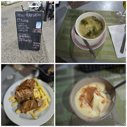 Caetainly we do not recommend it, find another place nearby, we went there and asked for a beer and a coffee, after 10 minutes the owner arrived rushing us to order, when told we were about to leave he, with extremely rudeness told us to use only one table due to our consumption not being enough for the two tables we were using. I understand the comercial point of view but this does not explain his rudeness behavior. A unpleasant situation that I don't wish to other pilgrims. (they have a pilgrim's menu but they are not friendly...