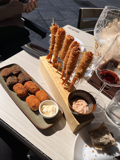 Read moreMoment of gratitude for this adorable wine bar doing god's work: it's basically the only kitchen open in Padrón at lunchtime (12:30pm) on a Monday. 🙌 The service was warm and friendly, efficient and lovely. We navigated a little Spanish /English language barrier perfectly fine, and smiles and great attitudes cross all cultures. It was a lovely lunch experience, with excellent wines, black squid ink croquetas, crispy prawns, and delicious artichokes with Iberico ham. Priced comparably with any city in Spain and great value for...