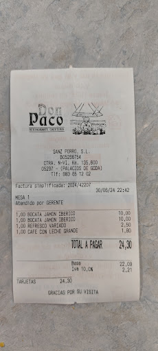 En resumen, Don Paco es el lugar perfecto para hacer una parada durante tu viaje. Con su excelente variedad de tapas y su servicio rápido, este bar de carretera ofrece una experiencia gastronómica que va más allá de lo esperado. Sin duda, es un lugar que visitaré cada vez que pase...