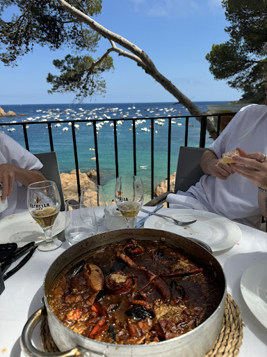 Read moreRestaurant au cadre magnifique…. Mais c’est tout!! Réservation faite pour 11 personnes, nous arrivons à l’heure et après le « show » du serveur, nous prenons commande, et c’est là que tout se gâte. Les entrées sont moyennes, nous attendons les plats avec impatience mais ça ne s’arrange pas. De l’agneau est servi en lieu et place de bœuf Angus, après réclamation le serveur qui ne sait pas ce qu’il a servi remplace l’assiette. Mais le top de l’amateurisme, c’est lorsque le serveur nous présente la paella commandée pour 4, puis repart en cuisine pour la servir….. il revient avec 3 assiettes de paella puis tourne les talons et repart continuer le service. Nous commençons à manger et lorsque le serveur revient nous lui faisons remarquer qu’il manque une assiette de paella. Il retourne en cuisine et revient avec une assiette vide pour reprendre un peu de paella dans les 3 assiettes déjà servies…. Du jamais vu!!!! Lorsqu’on lui fait la remarque que cela ne se fait pas , il met tout sur le compte du maître d’hôtel et repart en bougonnant. Nous ne le reverrons plus de tout le repas. Les autres serveurs tenteront bien de rattraper le coup avec beaucoup de gentillesse mais malheureusement au moment de la commande des desserts il manquait certains produits. Un repas qui devait clôturer un superbe week-end entre amis à Tamariu qui s’est soldé par un fiasco...