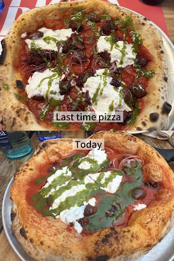"Cocina italo-ampurdanesa", "Harinas orgánicas de molino de piedra", "Masa de fermentación lenta", "Estiramos las pizzas una a una", "Les pedimos comprensión si a veces tardamos un poco en servirles las pizzas". ¿Suena bien, no? Pues empecemos. Nos apetecía pizza y optamos por el menú, de casi 30 euros por persona, porque la denominada pizza "de autor " estaba incluida en el citado menú. Los entrantes bien, si más, pero después de una larga espera, que aguantamos estoicamente ya que estábamos avisados de que podían tardar, llegaron dos pizzas CRUDAS. Ni harina, ni molino, ni fermentación lenta, lo que está crudo está crudo, aquí, en Roma, en Pekín, en Manila o en Arkansas. Puro chicle imposible de tragar. Los ingredientes "de autor" consistían en cuatro hojas de albahaca, unos diez tomates cherry partidos por la mitad y mozzarella flotando entre agua y aceite. Llegados a este punto, os recuerdo que este engendro culinario forma parte de un menú de casi 30 euros, les digo que pasen mi pizza por el horno y me dicen que no, que la masa, que bla bla bla y me hacen otra, que para disimular la "crudez" viene quemada por los bordes e igual de incomible por el centro. Consumo y trago lo que puedo. Se eterniza la espera para retirar los platos y pedir postre. Seguramente viendo que habíamos dejado más de la mitad del engrudo en el plato temían nuestra reacción. Decidimos levantarnos y pedir la cuenta, pasando del postre que quedaba pendiente. Tuvieron el morro de preguntar que había pasado y va y nos dice el camarero que no es culpa suya, que solo son dos en sala, que no es su problema. ¿ACASO ES EL MÍO? Señores, no intenten engañarnos con publicidad con ínfulas de alta cocina. Antes de eso repasen el techo de telarañas y quiten el polvo de los fluorescentes, contraten personal cualificado, que sirva una cerveza sin derramar...y que limpie el charco o cambie el mantel de papel. Sirvan también el vino a la temperatura adecuada. Si hubiera pedido el libro de reclamaciones quizás tendríais pronto una visita de sanidad y/o consumo. Para acabar, les diré que me he dejado otros aspectos lamentables para comentar, que lo haga o no depende de lo que lea en un futuro. Ustedes ya...