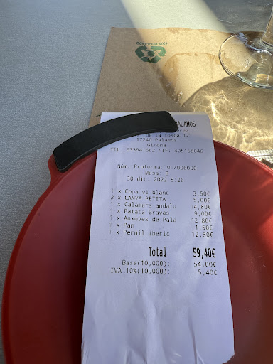Sobre el tema de la paella, coincidimos todos los comensales en el veredicto. Paella insípida, poca cantidad y cara para lo que se nos sirvió. Fue una decepción enorme siendo la zona de Palamós, que tiene un género espectacular.