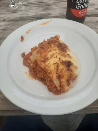 Read moreMenú normal, ambiente habitual del entorno. pero ojito con la persona que nos atendió. No he visto nada así en mi vida. Le pregunté educadamente si nos podíamos sentar en una mesa aparentemente libre y su respuesta fue no soy Dios ni lo puedo ser, de muy malos modos y escupiendo otras lindezas por su boca. A pesar de eso nos quedamos (el Camino es lo que tiene, les llegará clientes a pesar de su mala educación). Tardaron más de media hora en dirigirse a nuestra mesa y porque salió otro compañero, porque este mal educado no tuvo la intención en ningún momento de atendernos (y tal cual lo hizo a pesar de ser el único que atendía la terraza, se ve que no le gustamos). Tras comer algo normalito del menú (tampoco nos dio más opciones que menú el que nos atendió, aunque al menos este parecía más normal), a esperar al postre otro buen rato (el de la terraza no se dignaba a mirarnos y le decía a su compañero que nos atendiera el pero tras muchos minutos de espera, en mi opinión). Y en esa espera presénciamos como este mal educado llamaba mentiros a una joven pareja de clientes a los que “invitó” a voces a irse escupiendo de nuevo lindezas. Segundo brote en el tiempo que estuvimos allí. Sinceramente, si podéis planificar las paradas, buscar alternativas. Podéis caerles en gracia y será medio normal o que le den brotes con vosotros y vivíais lo nunca vivido en un...