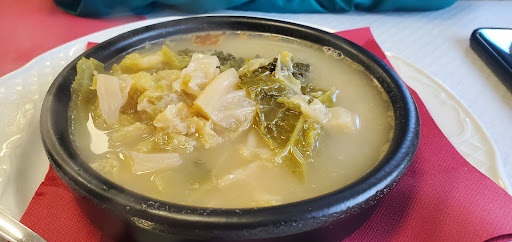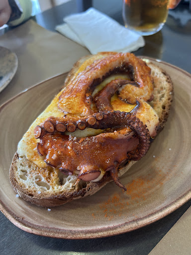 Sunday evening with limited dining opportunities chanced on Meson a boa vida. Having heard about the pulpos ordered roasted on bed of cheese and crusty bread with dusting of spicy pimenton, caldo gallego and fritos patatas. Freshly prepared fries were unevenly fried, the caldo came steaming hot but tasted underwhelming- more like watery cabbage mush - pulpo and cheese was a delight though. Service was quick and friendly by 2 young wait staff. Paid 24 euros...