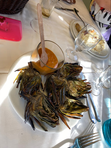 The meats are super fresh and all very simply grilled over a bbq. Be sure to get the toasted bread and rub with garlic, tomato, olive oil and then baste with aoli. The asparagus, grilled over the BBQ, is amazing with homemade Romesco sauce, as are the grilled artichokes. One of the best meats I find are the lamb chops. We live in London but this will always be the first restaurant we visit on the day we land in...