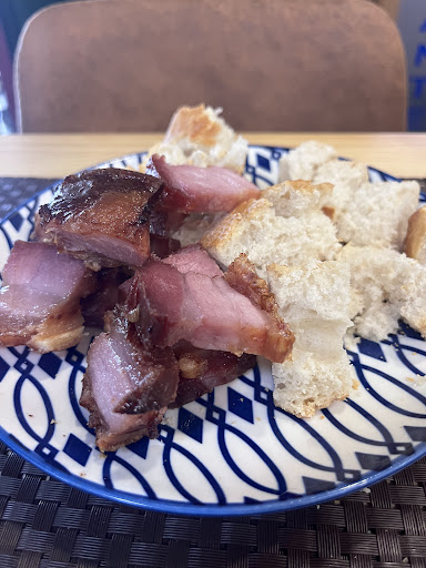 Read moreLlegamos de parada a mitad de camino, miramos las reseñas y nos decidimos a entrar, estaba bastante lleno y ya el ambiente era agradable, torreznos con un pinton delicioso en una bandeja en la barra. No tardaron en sntarnoa en una mesa alta de butacas altas, bastante comodas, fuimos con el peque de un año y medio. La comida estaba muy buena, morcilla, patatas bravas, una carne de pluma iberica hecha a la plancha, todo espectacularmente bueno y bien cocinado, mientras tanto el peque no paraba de moverse por el Bar, y las chicas que atendian y un chico tambien fueron encantadores, con paciencia cada vez que pasaban cerca del enano que estaba siempre en mitad de su camino, hago especial mencion porque nos hicieron sentir muy bien y que no molestabamos, cosa que en otros bares y restaurantes con un peque si nos ha pasado. Por ultimo decir que de postre y por recomendacion nos pedimos la torrija de la cual no soy muy fan y he probado torrijas con premios de calidad y concursos ganados pero…. La torrija que hacen ellos es otro nivel… mejor probarla. Comida, sitio, ambiente y servicio de 10. Repetiremos seguro cuando...