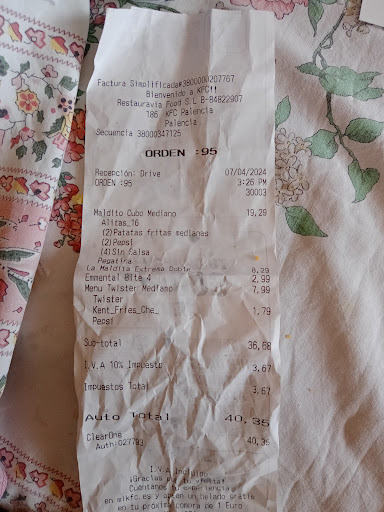 Read moreEl McDonald's y el burguer King están al lado. Sinceramente, entre en los otros antes porque solo quería dos de patatas, pero de normal están saturados y al coincidir con fiestas más. Vivo justo al lado de los tres pero nunca en el año que llevo había pedido al kfc, me encanta pero siempre voy los findes en mi ciudad. Mi sorpresa ha sido al ir un día como hoy, que tenían 1/4 de personas que el resto. Solo dos de patatas y hemos estado esperando 20 min. He de decir que la persona que no atendió, pequeña, morena, tampoco ponía esmero, saco un pedido dos veces y hasta que el cliente le dijo, perdona, es el nuestro, ya lo estamos comiendo. No se enteró....en fin...entiendo la afluencia pero de verdad que la lentitud y la desgana de esta persona...hace años que no la veía y yo soy camarera igual que ella....no creo que vuelva a menos que el resto estén cerrados y no tenga nada de comer. Pero gracias, me habéis recordado porque siempre estáis vacíos a pesar de que me...