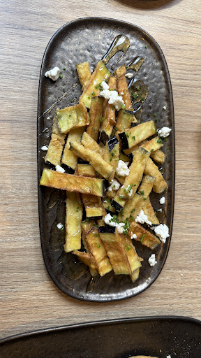 Para compartir pedimos un carpaccio de ternera, muy tierno y sabroso. Continuamos con unas berenjenas fritas con miel, que resultaron ser una auténtica sorpresa. Normalmente las preparan con una mezcla de harina de trigo y de garbanzo, pero en nuestro caso, al ser celíaca, las hicieron únicamente con harina de garbanzo. Además, aunque suelen freír con aceite limpio separado —haciendo varias frituras pero sin mezclar harinas—, en esta ocasión cambiaron el aceite solo para nuestro plato. El resultado fue espectacular: probablemente las mejores berenjenas que hemos probado nunca, crujientes, ligeras y llenas de sabor.