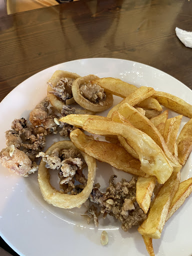 Read moreNO VENGÁIS!! La camarera morena con tatuajes ni siquiera nos saluda, preguntamos si hay sitio y nos dice que cree que todo está reservado y se va. Dejándonos ahí. Le preguntamos de nuevo si hay sitio y nos señala una mesa. Después de 20 minutos, hemos pedido. Un buen rato después llegan las aceitunas, pero no el alioli.. El arroz brut era literalmente agua. Insípido. Nos lo han cambiado por caracoles que estaban decentes. Los segundos: después de esperar otros 20 minutos nos dices que se les había acabado el lomo. Nos pedimos otra cosa. Llegan dos platos, uno rápido y otro ha tardado otros 20 min... y para nuestra sorpresa el tercero tampoco lo tienen!!! Llevamos otros 20 minutos esperando. Y a ver si llega... Ni una disculpa. Pedimos chipirones y nos han traído un mix de calamares y chipirones jajaja es que me tengo que reír porque es de vergüenza. Pedimos pan y nos lo dan en un cuenco de metal mojado y sucio por...