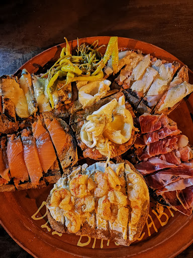 Read moreBar Cabrera, bastante conocido y de moda en Palma, lugar para degustar el pa amb oli, un plato típico de aquí. Hay que llamar para pedir reserva ya que se peta de gente. El servicio, rápido. Puntos negativos: la terraza del bar Cabrera Bis, para verano tenerla descubierta como la tienen ahora tiene que ser una gozada, pero ahora mismo...no, entiendo que se llene de gente el local, pero la terraza debería estar más adaptada para el frío, tener que cenar con la chaqueta puesta no es muy cómodo, el calor de las estufas no llega igual para todo el mundo, cuando nos trajeron los pa amb olis estuvo apagada la de nuestro lado y los pa amb oli que venían calientes tardaron segundos en enfriarse, ... Otro punto: calidad/precio poco adecuada, no deja de ser un pa amb oli, me pareció caro para lo que realmente se sirve, el ai i oli y la sepia no nos mató mucho. El pan podría llegar a la mesa con un toque calentito/crujiente. Puntos positivos: la variedad de tipos de pa amb oli, y la presentación, hay que decir que cuando traen la bandeja llena de pa amb olis diferentes es un espectáculo, algunos de ellos buenísimos, como el de langostinos, salmón ahumado, lomo con queso, ibérico.... Sin tener en cuenta los puntos negativos, me parece un lugar agradable para degustar pa amb olis, tomar algo y pasar un buen rato con la familia, amigos, pareja... Volveremos y probaremos otros distintos e intentaremos reservar dentro del local!...