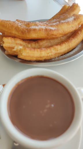 Lo prometido es deuda, me he pasado con mi mujer a desayunar un delicioso chocolate con churros. Disponibles fines de semana y festivos hasta las 12! 😋😋😋