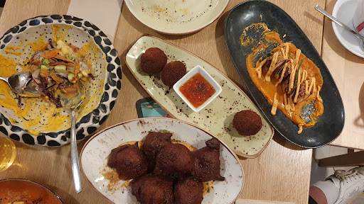 don't get me wrong – this is a great place ! the tapas are incredibly delicious, really recommend the sea bass ceviche with cabbage, crispy sweet potato skin on a citrus sweet potato puree base. so beautifully draped on ceramic plates with cute patterns and sprinkles, makes me wanna join a pottery class 👐