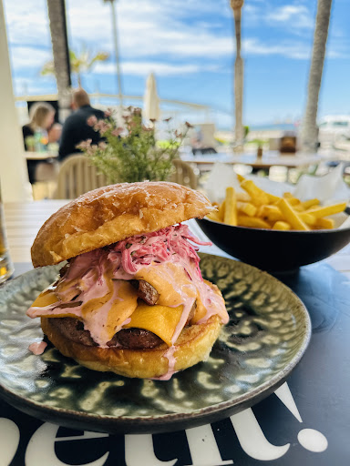 Read moreWir waren um ca 16 Uhr da . Es war recht leer . Hatten diesmal uns nicht die Bewertungen angeschaut sondern vor Ort den Laden gewählt , weil wir Lust auf Burger hatten . Saßen draußen . Musik war angenehm, Chillig. Man hatte nicht das Gefühl am Ballermann zu sein . Der Herr vom Service war jetzt nicht besonders motiviert . Eher gelangweilt . Man hatte nicht das Gefühl so willkommen zu sein . Schade. Gerade der Service muss sitzen. Getränke kamen schnell . Wir waren 3 Tische insgesamt im Restaurant. Essen kam nach ca 20 min . Wir waren positiv überrascht . Mein Burger lag preislich bei 15€ , der von meinen Partner bei 16,50€ OHNE Pommes /Beilage . Ist ok , aber schon ohne Beilage so das max. was ich für ok empfinde. Beilagen für 4,90€ dann extra . Fleischmenge 200g. Mein Burger war super . Fleisch war saftig . Soßen passten und es war genug zum beißen. Mein Partner hatte den smash Burger mit dem Spiegelei . Saftig ,lecker , tolle Zusammenstellung. Broich Brötchen, top . Essen 5 Sterne . Das war unser dritter Burger in unseren Urlaub und hier konnten die echt gut oben mithalten . Chicken Fingers /nuggets waren ebenfalls sehr lecker . Leichte Panade , das Fleisch saftig . Und die Soße dabei , etwas rauchig aber schon etwas süß , sehr geil . Leider wurden wir nicht gefragt , ob alles ok sei oder wir noch etwas trinken möchten . Haben etwas auf die Rechnung gewartet die uns drei , dann einfach hingelegt wurde und weg war der Herr . Ja danke für nichts. Wir mussten die Rechnung selbst teilen und haben dann noch mal auf den Service gewartet . Will man unser Geld nicht ?! Eine Freundin ist dann rein gegangen zum zahlen . K.a wie lang wir sonst noch gewartet hätten . Bis zum Ende waren es 5 belegte Tische . Also kein Grund für diesen 2 Sterne Service . Aussicht war super . Unsere Rechnung lag bei 50€ 2 Coke Zero , 2 Burger und die chicken Fingers . Wäre ich der Chef des Restaurants und würde die schlechten Bewertungen bezüglich dem Service lesen… Ich würde die Jungs und Mädels auf...