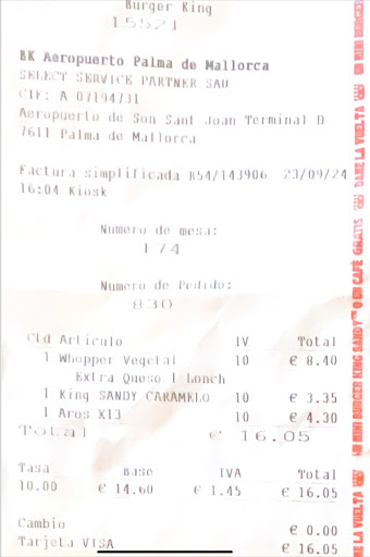 Read moreI hate to leave one star reviews for restaurants and I know this will fall on deaf ears but this is THE WORST Burger King I've ever been to. Firstly, there was an issue with my custom burger, you want it your way at BK then forget it! Plus the staff refused to amend my order. Speaking of food, the quality of the food was very poor. I usually love a Whopper, especially in Spain with their sweet Spanish tomatoes and onions. This was poor. Awful in fact. That fake flame grilled taste stayed with me all day. The fries were inedible, not just poor but incredibly bad. Stale tasting, shriveled and dry. 10 minutes for my order to be ready as the "cooks" just stood around. The restaurant was generally sticky and dirty feeling. 40€ for three meal is too expensive. The staff unhelpful. Hated it. Everything about it. It's put me off Burger King all together which is...