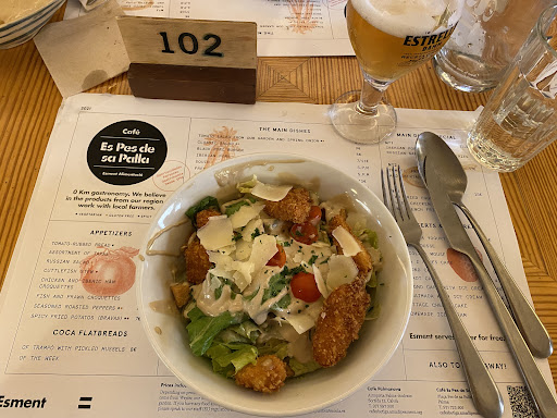 Read moreWe had several servers come to us to take our order very quickly. We took a while to actually order food because we were trying to translate the menu that they gave us in Catalan. That was rather silly. Once we got the menu in Spanish and English it was smooth sailing. I ended up getting the chicken salad with anchovy dressing. It was basically a chicken Caesar salad (the dressing definitely tastes more like anchovy though) but it was delicious. I was still thinking about it the next day. The croquetas were also very good- much better than any croquetas...