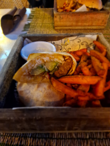 The restaurant looks amazing but doesn't expect miracles. For the price range of the restaurant, I would expect a high standard of service and food. Neither happened. We ordered a bottle of white wine. The waiter brought us a glass of wine and a bottle of water. I understand that mistakes can happen. But then he came 2 more times because he didn't remember which wine we wanted. The food wasn't good at all. My partner had a wagyu burger. The meat was too dry. I had a vegan burrito with guacamole. I got a burrito with a slice of hard, unripe avocado. There is such a big difference between guacamole and avocado. The only positive was that I got sweet potato fries which were good. The menu is so confusing. The German translation is bold so it looks like the headline. There is no explanation of what the food contains. When we complained about our food experience, the waiter said he would pass it to the kitchen. No manager deal with it. Nothing. For restaurants with this price range is essential to have a manager dealing with problems. Save your money and rather try some other...