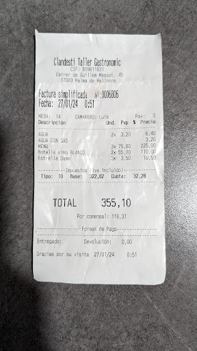 Clandestí is to come with your most free and open mind to enjoy to the absolute fullest! It is a very fun and electric place where the whole team works super hard and in a very well coordinated way but they don’t just do that. It’s a multisensorial performance where they put all their hearts and they play very different styles of music to awake inside you the right vibe that will go well with the food that is being served. It’s not only music what is added to the experience but also the lights will be turned off to feel the food in a very different way where the rest of your senses will need to be more fine tuned. They have a small selection of natural wines, Camille who is the sommelier will do her best for you to have the best time. Such a great host!! But really everyone gives their best. It’s actually very inspiring to see a very young team giving 300% of themselves. What they do is not easy, it requires a lot of discipline and love and passion, which they definitely have! Pau who is in charge of the whole project is a great director and a very good mentor for the rest of the team. Well done and keep it...