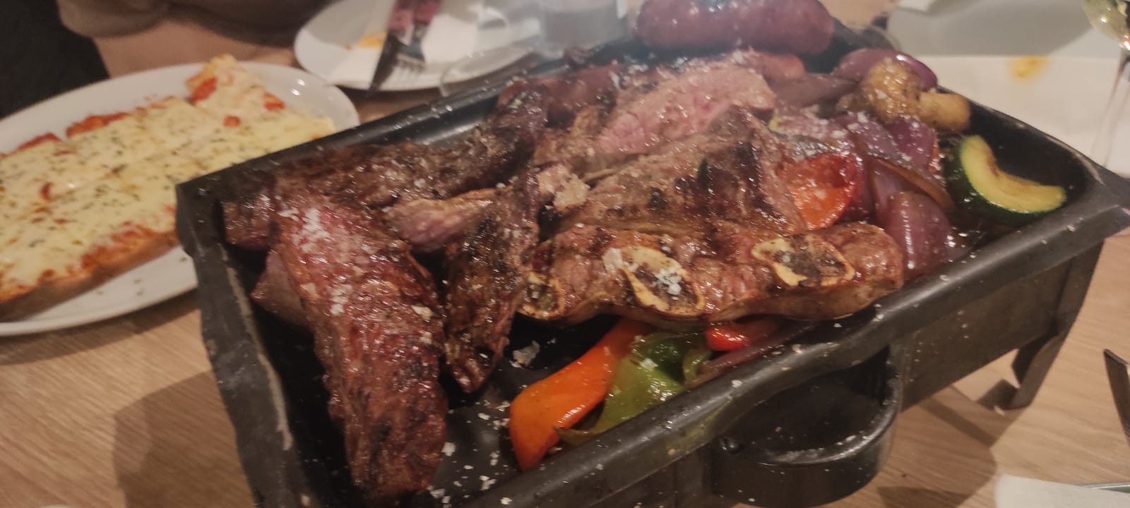 Read moreLa comida y la atención es de primera, son atentos, simpáticos y efectivos. La comida es muy rica y gustosa y la traen muy rápido. Fuimos a cenar con mi familia (5 pers) en dos ocasiones. La primera noche pedimos la parrilla común para dos o tres personas 34€ y medio metro de pizza mozzarella, bebidas y 2 postres chaja 70€ todo un viernes por la noche. La verdad que todo muy rico. Parece que la parrilla llevaba dos tipos de chorizo (el tipo rojo español y el criollo) pero no nos vino y me enteré cuando fuimos la segunda vez que mis hijas querían chorizo al pan y le fui a preguntar al asador que chorizo llevaba y me dijo que el chorizo criollo. Y le comenté que la parrilla que nos habían traído la vez anterior no había traído y me dijo que había sido un error y que me pedía disculpas. La segunda vez me pedí un matambre a la pizza 14€ y todavía se me cae la baba cuando pienso en eso, jeje estaba tierno y gustoso, la mozzarella en su punto. La pizza riquísima cortada en rectángulos o porciones como en Uruguay. Todo perfecto. Lo mejor el ambiente entre compañeros que se trasmitía a la gente y te hacía sentir como si estuvieras en el paisito. Un saludo especial al chico uruguayo que atendía en la entrada, simpático y ejecutivo y al argentino de coleta que nos hizo reír un montón. Le aconsejo reservar mesa sobre todo para el finde, porque se peta. Solo volvería a Mallorca a comer ahí. Gracias por traer un poquito de la comida...