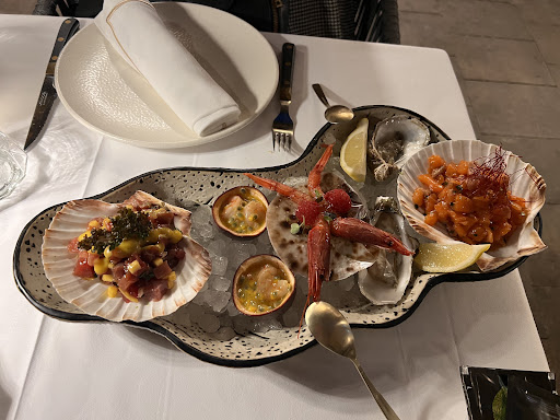 Read moreVery nice place, nice and friendly servants. We ordered Enoteca fish crude, which was fantastic (see the picture). The menu included fish of the day according to the menu - so we had great expectations for the fish. To our great disappointment the fish of the day showed out to be the two scrimps in the middle of the picture 🤔 (for the chef: a scrimp is a shellfish, not a fish - a fish i defined as: a limbless cold-blooded vertebrate animal with gills and fins living wholly in water). Well, went away a bit disappointed, but can recommend the place anyway if you are not that hungry, but ask the servant about “fish” of the day before ordering. 5 stars if the fish of the day actually had...