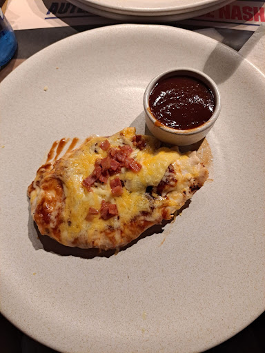 Pedimos un entrecot con salsa steakhouse, buscando evitar otra decepción con la hamburguesa, como me ocurrió en mi última visita. Sin embargo, la experiencia comenzó mal cuando descubrimos que no había ni patata asada ni col como guarniciones disponibles, limitándonos a patatas fritas y ensalada. Pedimos también las clásicas patatas con bacon para picar, que, afortunadamente, no fallaron.