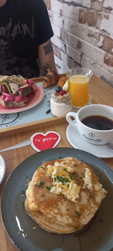 También vale la pena mencionar las tostadas, que no son simplemente un acompañamiento: tienen varias opciones, desde las más clásicas con aceite y tomate, hasta combinaciones más creativas con aguacate, hummus, queso fresco o incluso ingredientes de temporada. Todo preparado al momento y con buen pan.