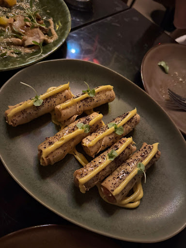 We started off with the most delicious, crispy spring rolls and perfectly seasoned edamame, which set the tone for the entire evening. For starters, we also had the chicken satay, which was a statement dish on its own, and the aubergine miso, which was absolutely delicious.