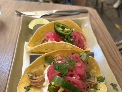 My tacos were good. One friend had chicken skewers which she said were greasy. My other friend - who couldn’t have the garlic tomato sauce - had egg and chips: not what he wanted.