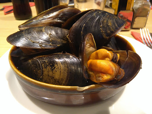 Read moreNo llevan bien lo de servir a grupos a pesar de hacer reserva. Servicio lentísimo, salida de platos a destiempo, ausencia de cubiertos y pan, por mal aprovisionamiento, "Se nos ha terminado el pan". No realizan una correcta retirada de platos ni de cambio de cubiertos y hemos tenido que cortar entrecot con cuchillos de untar. Costillas de cordero casi carbonizadas y mala distribución de las piezas, no habiendo ninguna costilla central en el plato. La guarnición presenta una especie de tarta de patatas al horno que es casi lo mejor, pero las verduras salteadas en juliana terribles e incompatibles con la carne ya que han sido realizadas al estilo oriental. De echo, este local, de grato aspecto es regentado por profesionales de nacionalidad china, tal vez de ahí que no lleven muy bien lo del servicio. Por otro lado, los mejillones a la marinera eran de un tamaño grande y muy disfrutables. Los precios bastante razonables. Se puede probar para...