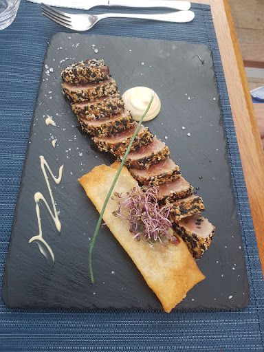 Read moreA hidden gem, the bar staff offer excellent service and a lovely chilled vibe with a number of comfortable sofa areas and fantastic views upto Bellever Castle and over the port (on the Fri night we were there a live DJ also). Dinner in the restaurant was a mixed bag with our group sharing a few various starters (squid, croquettes & tomato with Anchovies) and then a main each; the tuna tataki that I had was very tasty and nicely presented and my friends fillet steak seemed to go down well (albeit a little lacking on presentation). Regrettably though my wife had the duck and friend the fish, both of which commented that the dishes were somewhat bland and lacked veg. The setting and ambience was nice and service like the bar was excellent, attentive but not rushing us. The wine menu could have included a few more local Mallorquian wines however the local Velo rose we opted for went down very nicely. All-in-all a good night and I would...