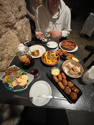 (Palma de Mallorca, mid January 2024). This is a mainly bear bar favored by younger local crowd to get together for drinks and pintxos before going out for dinner. It opens at 7 pm and fills in within minutes even though it is a pretty large space. Once it's full, it is incredibly loud. 80 types of bear, bar tenders work very hard, but ordering at the bar is very confusing as there is no line, just a huge crrowd around the bar, so try to get eye contact with a bartender who will then take your order. Pintxos are displayed in three groups ( with meat, with seafood/fish, and vegetarian). 80 types of bear, mainly bottled, only 4 on draft. You order at the bar, pay and take your drinks&food to the table ( if you came at 7 pm and was lucky to grab a table). There is also a dinner menu ( only in Spanish). Pintxos were ok and very cheap - just over Euro2 a piece ( we tried from all three groups) . Local draft bear and a bottled cidra were good. We made a mistake to stay for dinner and ordered Nachos with cheese and pork and Tzatziki With Friends from the main menu. It was a disaster. Nachos were absolutely terrible. I think we got the bottom of the bag as all chips were small broken bits, it was difficult to eat, I had to use a fork(!!!). The melted cheese is the greasy tasteless American orange cheddar, minced pork was almost unnoticeable. And the heartburn afterwards...... Tzatziki &Friends was a platter with pita bread pieces and three small dishes with yogurt (which is apparently tzatziki), veeery salty humus, and pretty good tapenade (chopped black olives). It was an...