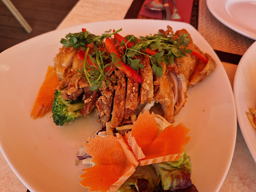If you want to eat bad food, you go to another place, here you can get only very bad food. We went to this restaurant because it was proposed by google as a acceptable Thai restaurant. We went in, no waiter there. A young guy said wait and we waited for a lady, who not even said hello or good day or so. My friends ordered a soup and chicken curry, my wife fish and I a beef curry. We ordered our food and the waiter ask if we do not want to order rice, so rice was not included. I ordered fried pasta and my friends rice. After 20 min waiting time they brought the starter where 50 % was lemon grass and ginger. The soup was not tasty at all. When they brought the the main course, I asked them to fry the pasta again because the pasta were cold. Another waiter came and told me that the pasta is ok but took them away. During dinner my friends felt not well and she went to the bathroom to vomit, she was happy, that she made it to the room. I paid the bill and we went back to the hotel, where my friends felt didn’t make it to the room to vomit, he used the groundfloor bathroom. Overall the food was a nightmare and I can only warn everyone about the food in...