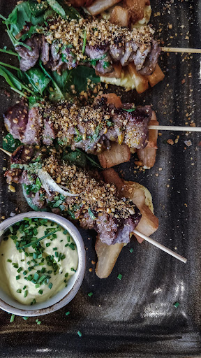 The menu seemed all over the place - like you don't know what cuisine it is based on the menu. At first, I thought it was a turn-off but then realized there were so many options. We got croquettes, anticuchos, can't remember the name, but the fried chicken pieces and the Naan, and I also got the burger. The anticuchos were cooked perfectly, not over or under, but a perfect medium well. The flavors were spot on! The croquettes were crunchy, not greasy, and a little ball of flavor. I didn't try the chicken but my daughter loved it and it looked good. I was not sure about the Naan based on the description, but when I tried it, just WOW!! The flavors were so tasty and balanced. Please try it if you're on the fence. It has a slight curry flavor and it's of so good. The burger was one of the best burgers I've ever had! It was cooked to perfection. It was juicy without being undercooked. The pancetta was crispy and the cheese melted, the bun soft.