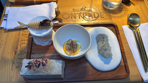 The portions here are all very, very small and the price is quite high. But that can be OK if the flavours, presentation and the quality are exceptional - sadly, this was not the case here. After some tiny and very forgettable starters we chose a very ordinary fish of the day and a terrible squid dish for mains. Both were truly dreadful, especially the tiny skewer of tasteless, chewy and dry octopus with a few tasteless chickpeas. I am an octopus lover and very often take it when it is on the menu - this was 100% the worst octopus dish I've tried. How can they serve this? How can they charge €30 for this? The rest of the food wasn't much better.