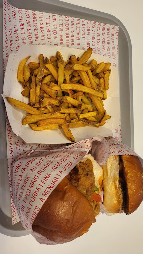 Read moreMuy sin más. Hace tiempo que los sigo en redes y me gusta mucho su rollo, justamente por eso a lo mejor tenía unas expectativas más altas. En la carta hay 4 hamburguesas, lo cual me parece perfecto. Prefiero una carta reducida pero que se sientan cómodxs con ello en lugar de los sitios que te hacen de todo. Pero es que al final tampoco son hamburguesas super originales ni diferentes. Mi amigo pidió la cheese burguer, que, encima, la pidió sin pepinillos, así que la verdad, sin más, una cheese burguer de toda la vida. Yo pedí la trempó crispy burguer. Que se supone que lleva una salsa picante (puedes elegir con o sin picante). Pues la mía picaba un 0 de 10. Lo peor, aún así, fue el trato de la chica. Le preguntamos sobre qué llevaba la salsa pink barbie :"pues una salsa rosa".... oook Pedimos agua con gas y no tenían. Cuando ya estábamos comiendo vino un chico, yo diría que argentino. La "camarera" le explicó cómo iba la cosa y que fuera de carta tenían una hamburguesa con ensaimada. El chico preguntó qué es la ensaimada y la chica le dijo con toda la pachorra que no se lo podía explicar, y tuvo que llamar al cocinero, a Toni, que es el que sale en los vídeos de instagram y el que te hace tener ganas de probar sus burguers. Las patatas son muy mediocres.