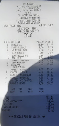Para colmo, el precio del pa amb oli oscilaba entre los 14 y 16€, lo que lo hacía aún más indignante. Aunque, es cierto que el embutido que acompañaba el pan (camaiot, sobrasada, jamón, etc.) era de buena calidad.