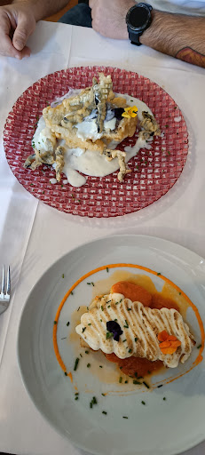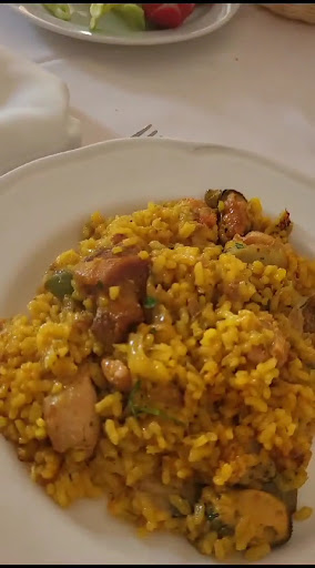 Proprietario del locale molto disponibile, accogliente e gentile. Conosce molte lingue. Locale carino, caratteristico, con anche un modellino di una barca molto grande. Troppi i ventilatori presenti in quasi tutti i tavoli, regolati pure al massimo. Io amo il caldo. lì dentro sembra d essere in mezzo a un vortice di aria. Il menù non é molto ricco per come siamo abituati noi Italiani. Quelli che loro considerano primi non sono i nostri primi... purtroppo la pasta con vari sughi di pesce che mi aspettavo in località vicina al mare non é presente. D'altra parte non ho trovato un posto alle Baleari in cui cucinassero bene al dente la pasta con ottimi sughi, quindi si deve andare alla scoperta dei loro piatti. Abbiamo optato per una paella di pesce. Presentazione ottima. In due una padella intera, con pesce e molluschi. La paella è servita direttamente sul tavolo nella padella, ricca e colorata. Viene poi servita al tavolo direttamente nei piatti da un cameriere. Veramente buona. Appena arrivati al tavolo ci hanno accolto con antipasti: olive degli ulivi locali, pane caldo, pomodori e una salsa di una salsiccia tipica locale. Uscendo il proprietario del locale ci ha anche offerto un sorbetto alcolico al limone. Prezzi un po' alti, soprattutto per l'acqua naturale, ma le quantità sono abbondanti e la loro squisita accoglienza lo fanno essere un...
