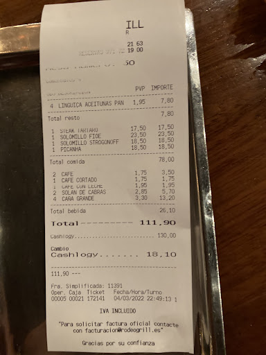 Y para colmo, de una cuenta (factura proforma) de 170 euros, ni se invitaron a un chupito.