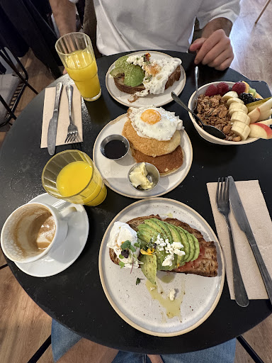 A few days ago, we went here for breakfast... Since we're on a vacation on Mallorca, this was the first Café that we visited. I got Salty Pancakes and a Limonade. My sister and dad got the same, and my mom got some kind of bread with avocado and chicken(forgot the name, sorry😂). The first thing I want to praise is the inteirer it's really comfortable and pretty. And if we are talking about the food, then it's a BOMB! Salty Pancakes were really good. they were super fluffy and freshly made. The egg and bacon were absolutely delicious, and it was a perfect match with the pancakes. The bread was also really good .The avocado and chicken were also amazing. Since I don't live here, the portions for me were massive🥞. In my country, the pancakes are 2× smaller. But I still ate it but in the end I was really full. Overall, for me, this is a really pretty Café with a great atmosphere and one of the best I've...